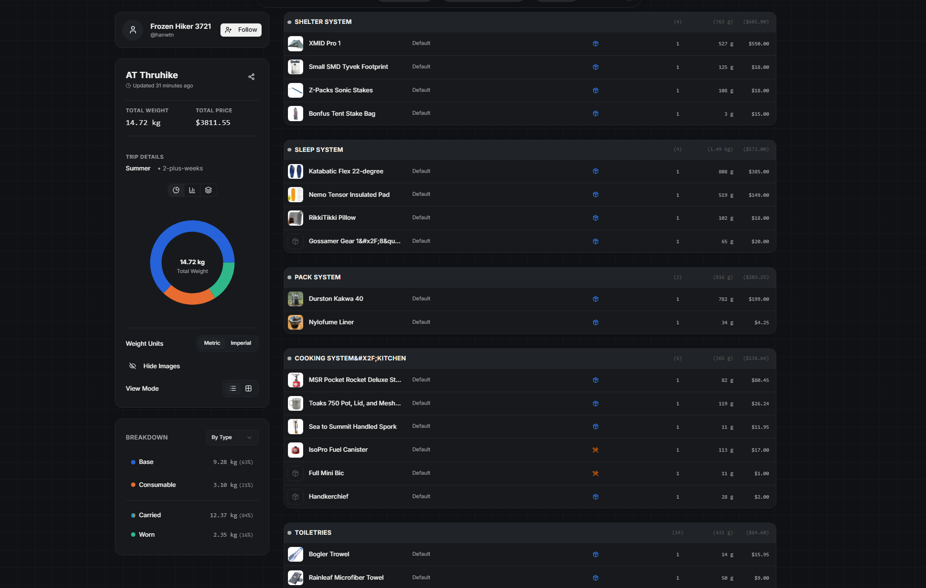 Packing lists, trip journals, and gear discovery.